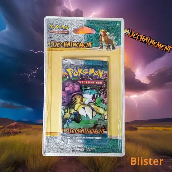 À noter : Le blister HS Déchaînement – Illustration Raikou présente quelques défauts sur son emballage visible sur la photo. Cependant, nous choisissons ce type d'items pour garantir que nos boosters sont non pesés et non triés. Cela permet de préserver l'excitation et l'authenticité de l'ouverture, offrant ainsi une expérience authentique et pleine de surprises, comme à l'époque de leur sortie